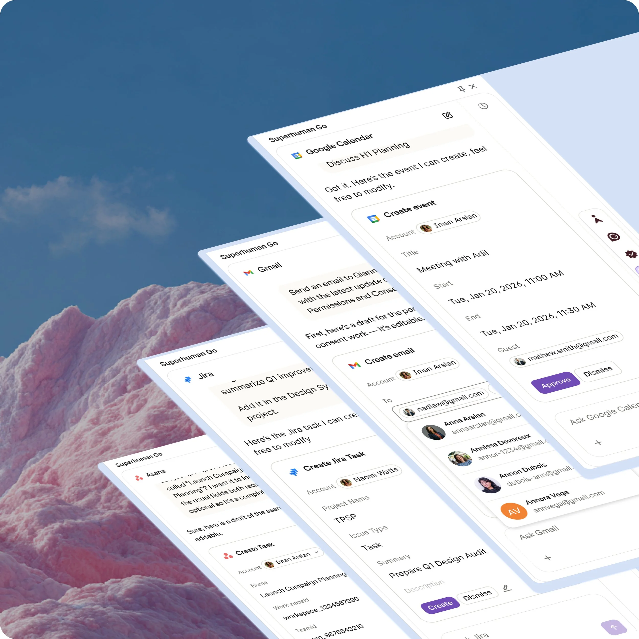 I designed a reusable interaction model for agent-driven actions across 10+ integrations. (Gmail, Calendar, Slack, Asana, Jira, Spotify).